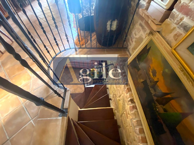 I due piani sono collegati a mezzo di una scala in legno e ferro battuto finemente rifinita