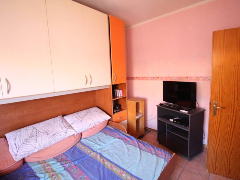 L' immobile, che gode di esposizione ai lati est-ovest, è così composto: ingresso su soggiorno con cucinotto e camino, disimpegno zona notte, camera da letto matrimoniale, camera da letto doppia, ripostiglio, bagno con vasca e finestra, balconi semiabitabili a servizio della zona giorno e camera matrimoniale.