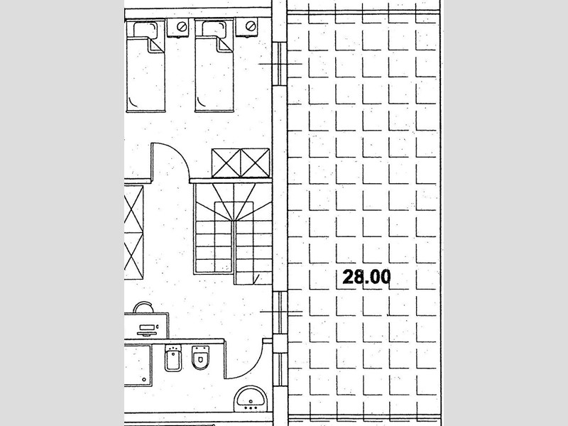 -Secondo livello: disimpegno, camera doppia e bagno finestrato con box doccia. Terrazzo di mq 28 circa a servizio della camera da letto e disimpegno.