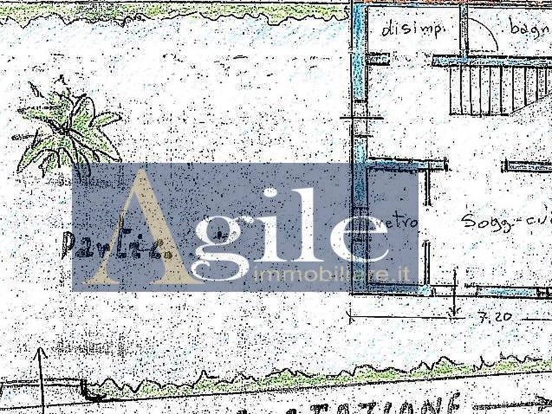 Piano terra di 44 mq circa composto da: ingresso su disimpegno, cucina abitabile, soggiorno e ripostiglio;