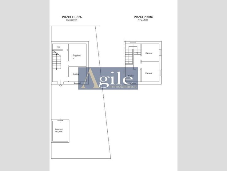 Primo piano delle dimensioni interne di 44 mq circa composto da: disimpegno, una camera matrimoniale, una camera doppia, un bagno finestrato;