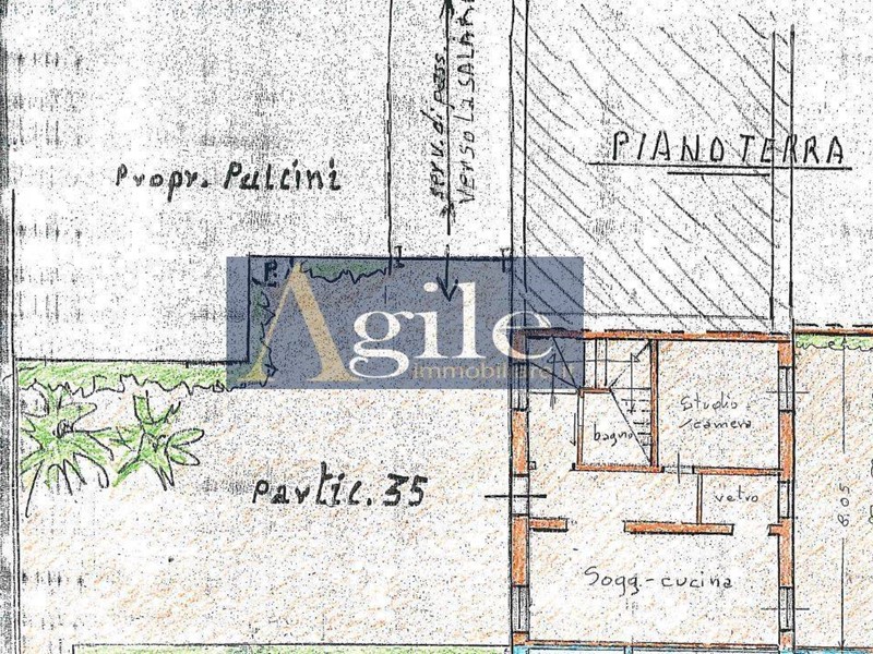 Piano terra di 70 mq circa cosi' suddiviso: ingresso su disimpegno, cucina abitabile e cucinotto, salone, bagno e ripostiglio;