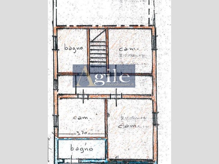 Primo piano accessibile da una comoda scala situata sul disimpegno di 70 mq circa cosi' suddiviso: due camere da letto matrimoniali, una camera doppia, bagno e sottotetto accessibile da una botola interna;