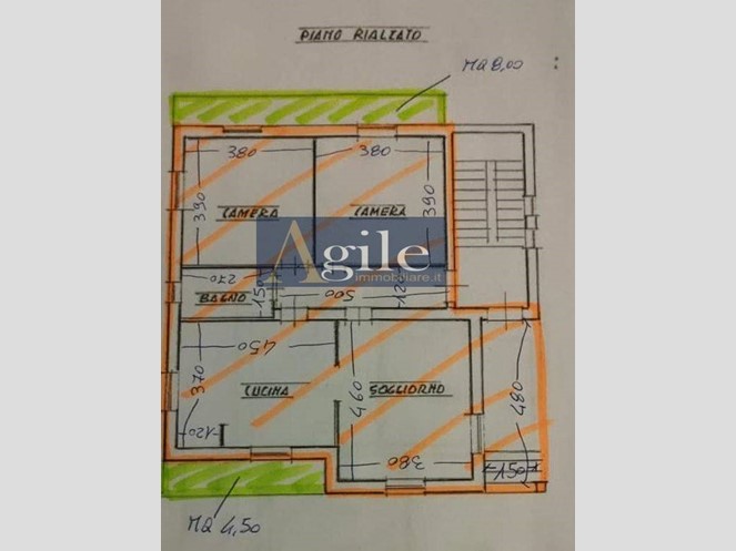 - Appartamento posto al piano primo senza ascensore di 115,00 mq circa con: ingresso su corridoio, ampio salone con possibilita' di ampliamento con la veranda adiacente, soggiorno, cucinotto con camino, due ampie camere matrimoniali, bagno finestrato con vasca, balconi di 12,50 mq circa al servizio della zona giorno e di una delle due camere matrimoniali;