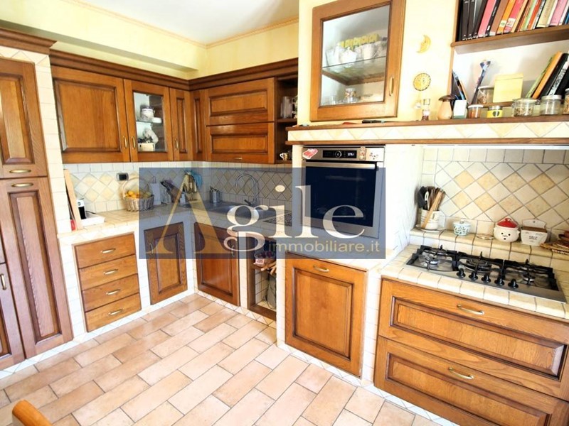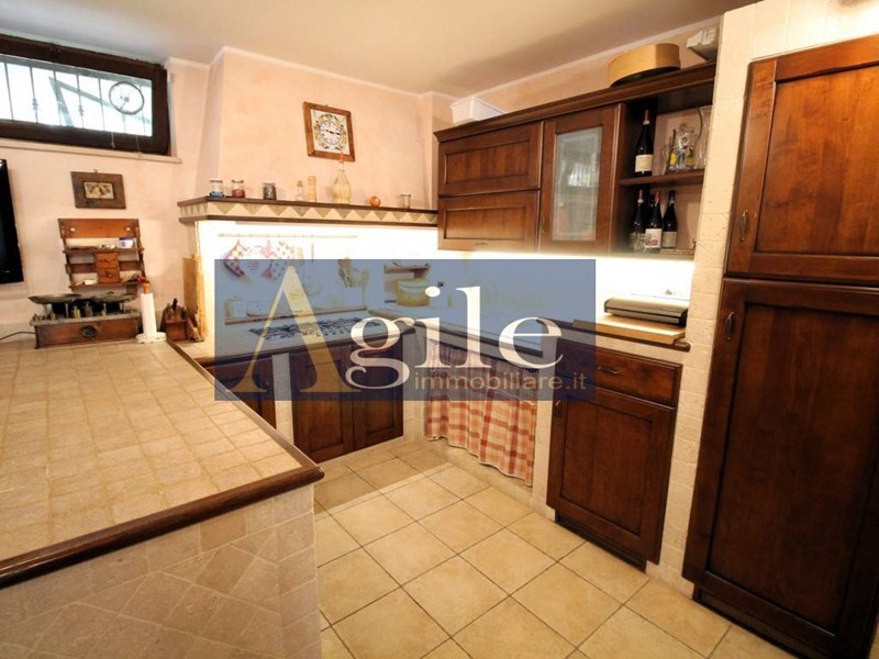 - Piano seminterrato delle dimensioni di 80 mq circa collegato da una comoda ed elegante scale interna, adibito a rustico con cucina in muratura con camino e forno a legna, bagno con doccia ad aerazione meccanica e ampio ripostiglio;