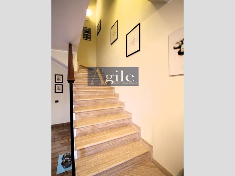 - Primo piano delle dimensioni di 80 mq circa collegato da una comoda ed elegante scala interna cosi' suddiviso: disimpegno zona notte, una camera matrimoniale con cabina armadio e balcone, una camera doppia con balcone, una camera singola con balcone, bagno finestrato con vasca con ampia armadiatura a muro;