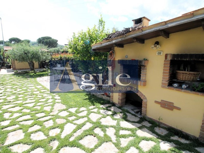L'immobile dispone di due ingressi indipendenti, corte pavimentata antistante l'ingresso principale di 60 mq circa, un giardino di 160 mq circa posto nel lato opposto l'ingresso e adiacente alla cucina abitabile, disposta su due livelli con esposizione Est ed ovest, si compone come segue: