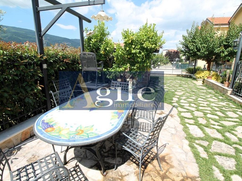 L'unità in oggetto di recente costruzione " 2005 ", pari al nuovo, con finiture di pregio, dotata di pavimentazione in Gres porcellanato su tutto il piano terra, parquet su tutto il primo piano, infissi in legno doppio vetro con zanzariere e persiane in alluminio con alette regolabili, portoncino blindato, impianto riscaldamento con caldaia a condensazione di recente installazione " 2022 " posizionata all'esterno, impianto di allarme perimetrale e volumetrico con videosorveglianza visionabile tramite il Web, climatizzatore split nella zona notte, impianto irrigazione giardino con pozzo di proprieta';