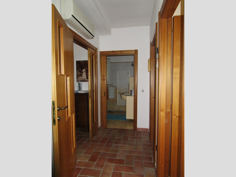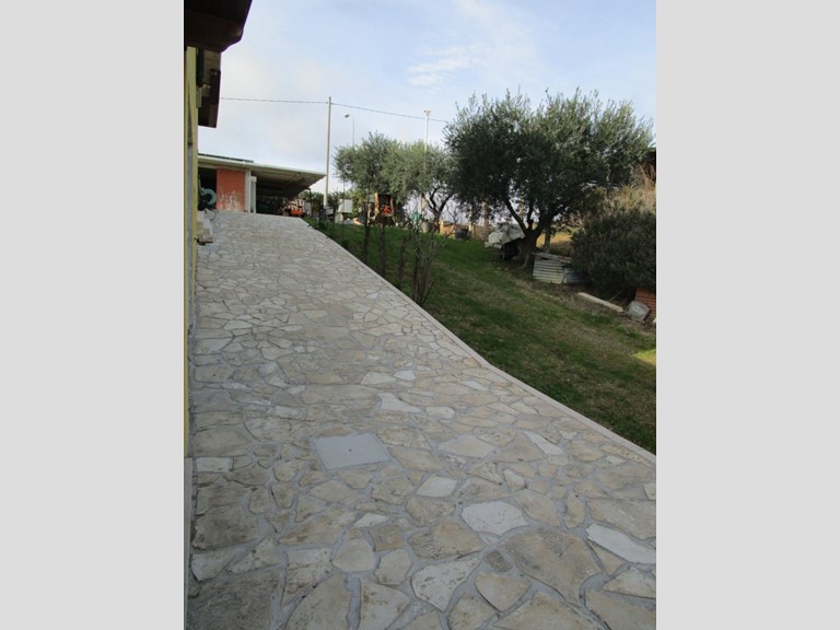 Ampia corte esterna di 2000 mq in parte pavimentata ove è stata realizzata una piscina con vasca di recupero dell'acqua, in parte a giardino attrezzato con barbecue, in parte ad orto con alberi da frutto in piena produzione;