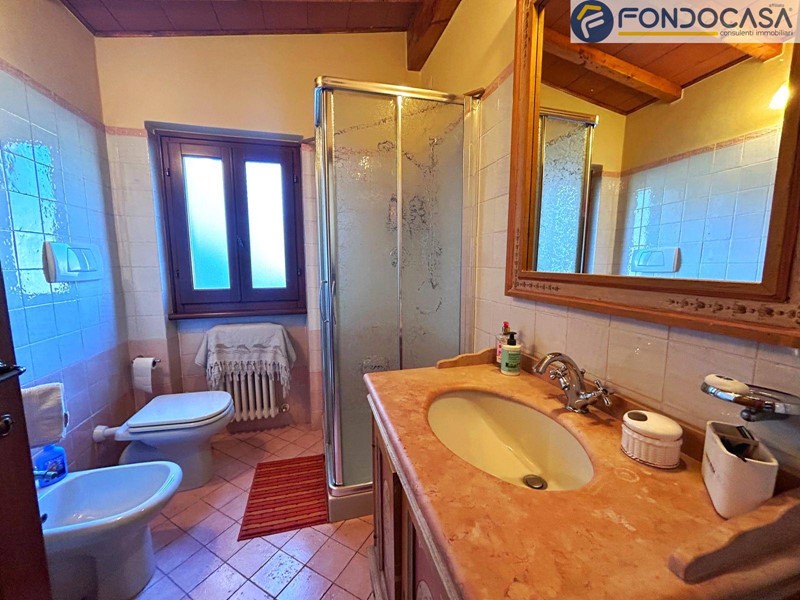 la villa si sviluppa su 3 livelli a piani sfalsati: al piano terra troviamo l'ingresso, cucina abitabile, bagno completo con box doccia, una camera da letto matrimoniale con vista sui monti circostanti, l'ampio e luminoso soggiorno con zona pranzo e accesso diretto ad una terrazza prendisole ideale per pranzi e cene all'aperto. Sul piano sfalsato invece abbiamo la seconda cucina (moderna e completamente accessoriata) con zona pranzo, la seconda camera da letto matrimoniale e bagno padronale con vasca. Ancora più sù, nella mansarda, c'è la terza camera da letto matrimoniale con cabina armadio. Scendendo incontriamo uno studio, bagno padronale con doccia a cascata, ideale per i momenti di relax e la quarta camera da letto matrimoniale, il tutto con accesso indipendente dall'esterno con una porta blindata.