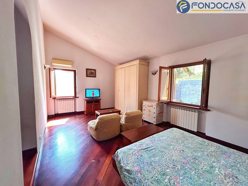 A pochi minuti dal centro storico di Pietrasanta, in zona residenziale e panoramica, privati vendono porzione di villa trifamiliare di 280mq su 2 livelli più mansarda, con giardino privato di 130mq. L'immobile è così composto: al piano terra c'è l'ampio ingresso con camino e zona pranzo di rappresentanza, soggiorno con altro camino e accesso ad un balcone con vista, cucina abitabile con bagno di servizio e dispensa e accesso al forno esterno in pietra. Tramite un disimpegno si accede ad un ampio locale tipo "taverna" con il terzo camino, ideale per le cene invernali con spazio sufficiente per ospitare amici e parenti ! ! ! Nel piano ammezzato troviamo invece una stanza/studio indipendente e poi al piano superiore la prima camera da letto matrimoniale, seconda camera da letto tipo suite, terza camera da letto, bagno con idromassaggio e sauna. Salendo una bella scala in legno raggiungiamo poi la mansarda di 50mq con soggiorno, camera matrimoniale con armadiatura in legno su misura e bagno completo con ripostiglio,completano l'immobile i tre posti auto scoperti, box e cantina di 12mq..