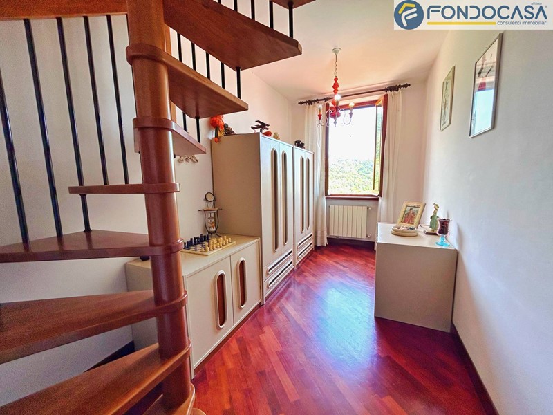 A few minutes from the historic center of Pietrasanta, in a residential and panoramic area, private individuals are selling a portion of a 280m2 three-family villa on 2 levels plus attic, with a 130m2 private garden. The property is composed as follows: on the ground floor there is a large entrance hall with fireplace and representative dining area, living room with another fireplace and access to a balcony with a view, kitchen with service bathroom and pantry and access to the external oven in stone. A hallway leads to a large "tavern" type room with a third fireplace, ideal for winter dinners with enough space to host friends and relatives! ! ! On the mezzanine floor we find an independent room/study and then on the upper floor the first double bedroom, second suite-type bedroom, third bedroom, bathroom with hydromassage and sauna. Going up a beautiful wooden staircase we then reach the 50m2 attic with living room, double bedroom with custom-made wooden wardrobe and complete bathroom with closet. The property is completed by three uncovered parking spaces, a garage and a 12m2 cellar.