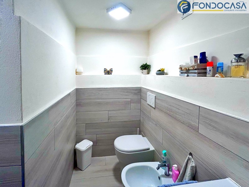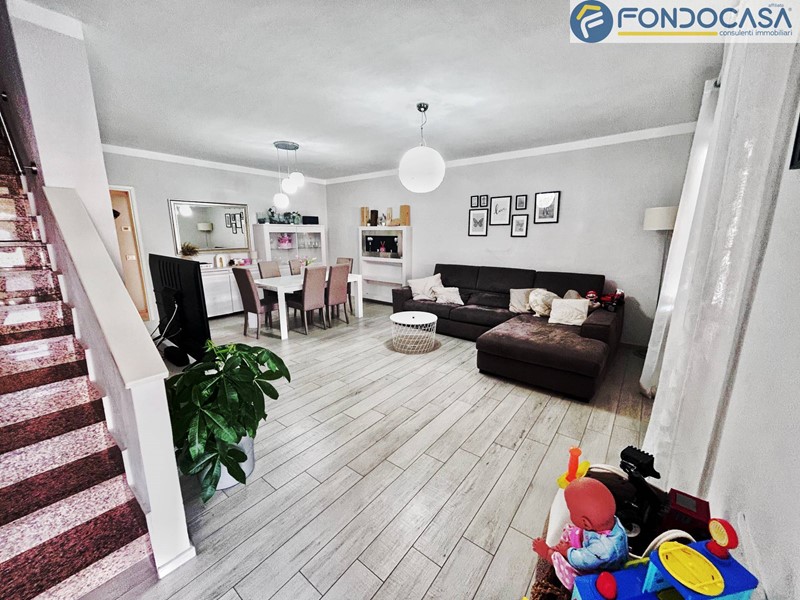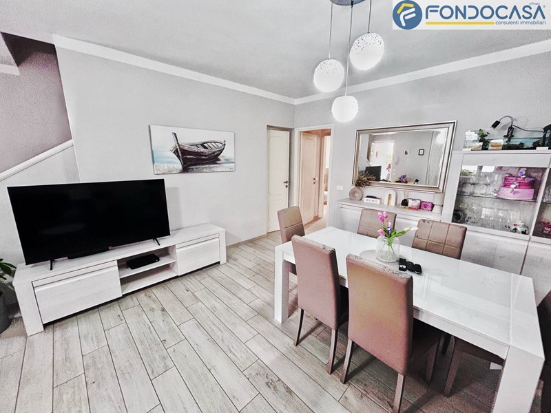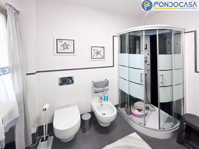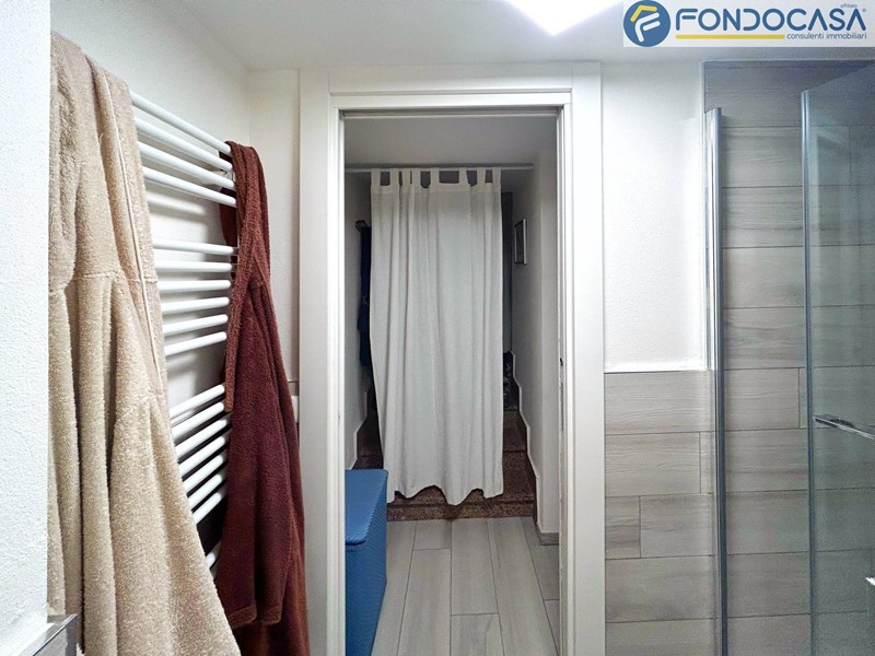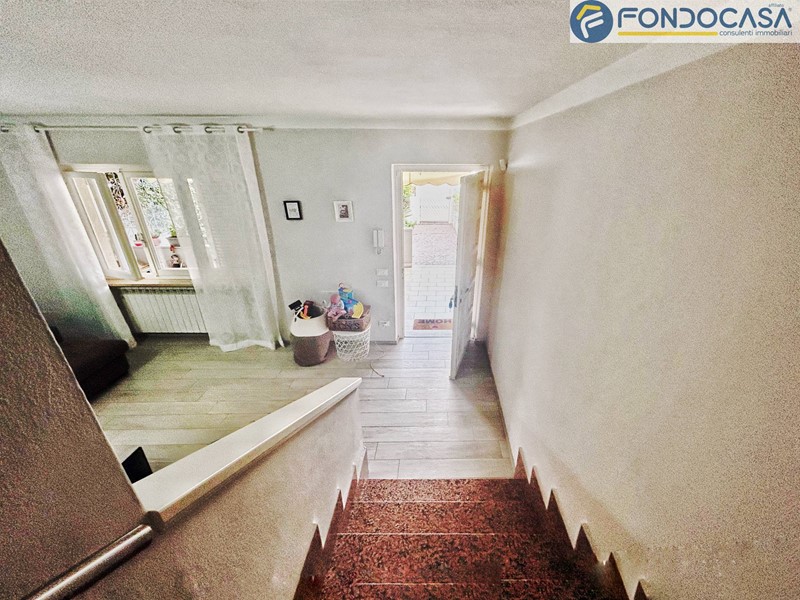 Al piano inferiore, al quale si accede tramite un ingresso indipendente e separato, l'altro appartamento con ingresso in soggiorno con cucina open-space, disimpegno notte, camera da letto matrimoniale e bagno.