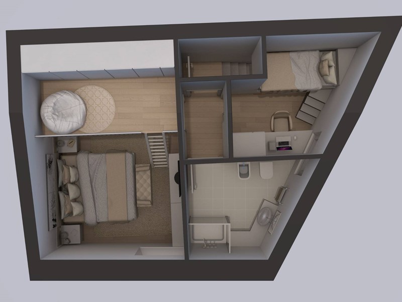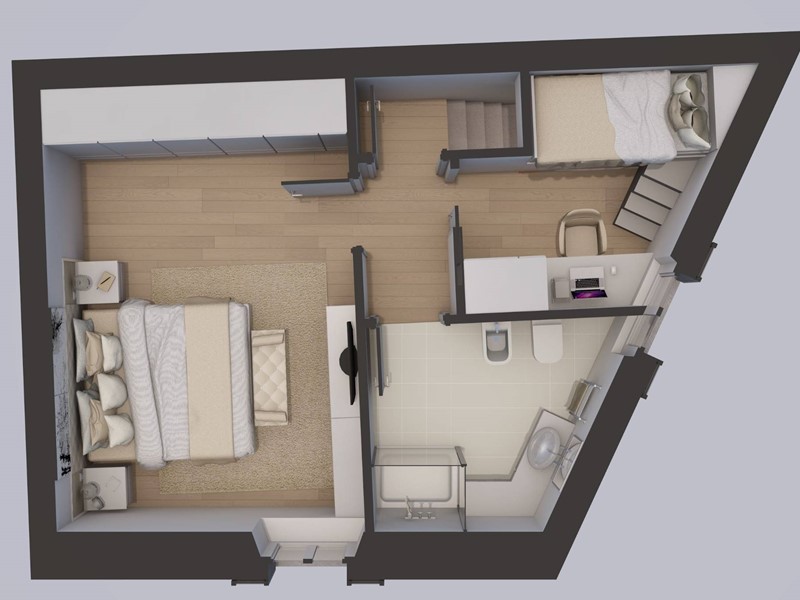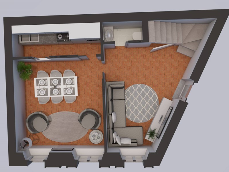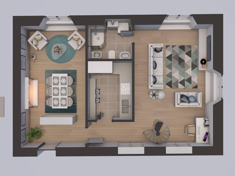 Rif. 2021PI017 - Tra il capoluogo di San Giuliano Terme e Rigoli, progetto di bilocale su due piani con possibilità di soppalco al piano superiore e dotato di 2 bagni, ingresso pedonale indipendente su strada pubblica, tramite un piccolo giardino di circa 100 mq ed altro ingresso carrabile e pedonale da cancello