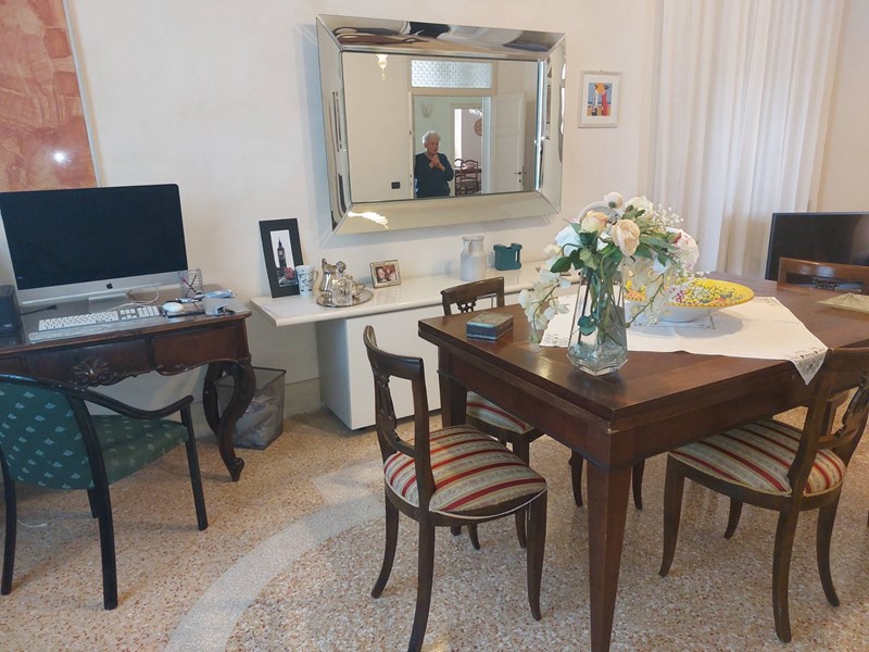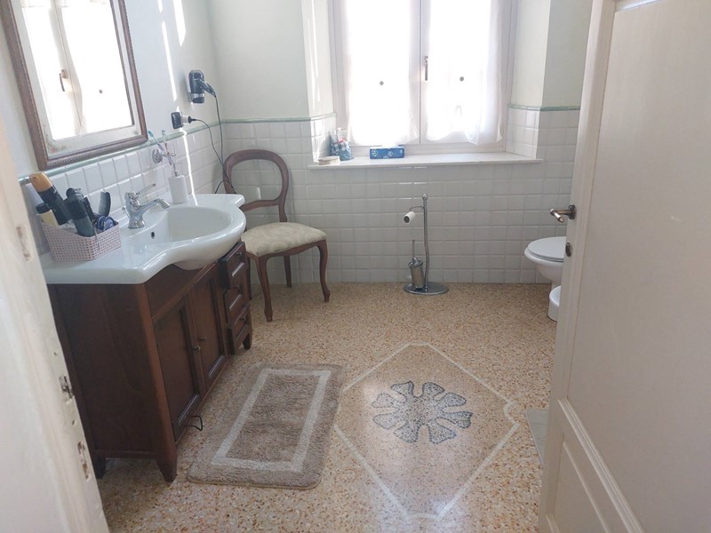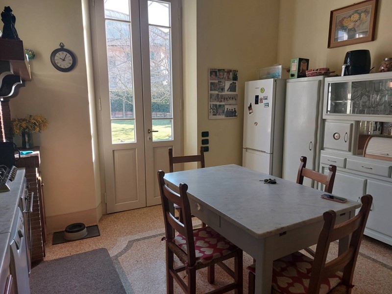 La villa ha anch'essa più ingressi in particolare tre, dal principale si accede al bellissimo atrio dal quale si apprezzano i pregiati pavimenti originali in graniglia restaurati e i soffitti affrescati, proseguendo si trova il primo salotto che condivide con la seconda zona giorno il camino in marmo, arrivando all'ampio vano scale troviamo il secondo ingresso, da qui possiamo accedere alla zona pranzo molto ampia, al bagno di servizio con doccia e alla cucina abitabile in cui possiamo apprezzare il lavello originale, dalla cucina troviamo il terzo ingresso e l'accesso alla parte laterale della villa dove abbiamo la zona lavanderia con pilozzo e caldaia di ultima generazione.