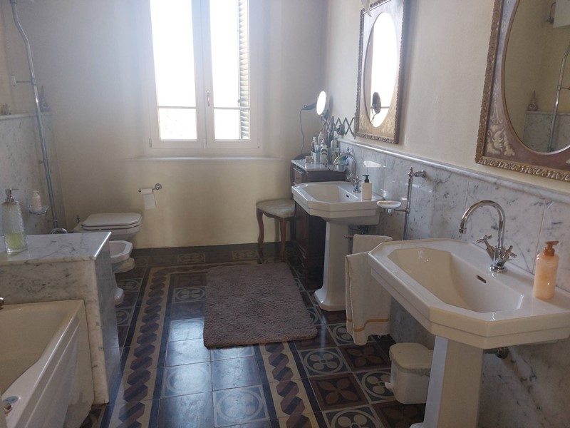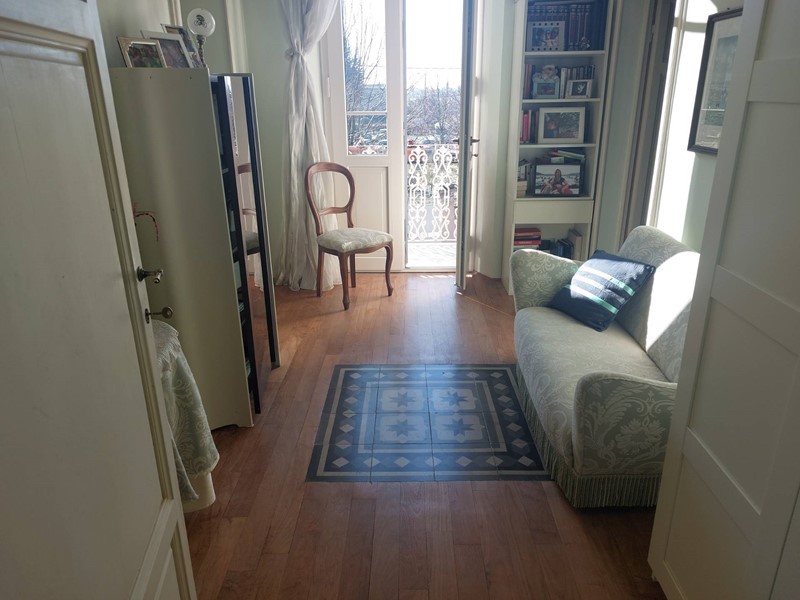 Salendo la scala al primo piano troviamo quattro camere matrimoniali di cui due che condividono un salottino d'ingresso, il bagno molto ampio con vasca idromassaggio e una zona studio con predisposizione per un terzo bagno e in cui troviamo l'accesso alla soffitta, tutti i pavimenti sono costituiti da mattonelle cementine originali magnificamente restaurate o da parquet pregiato.