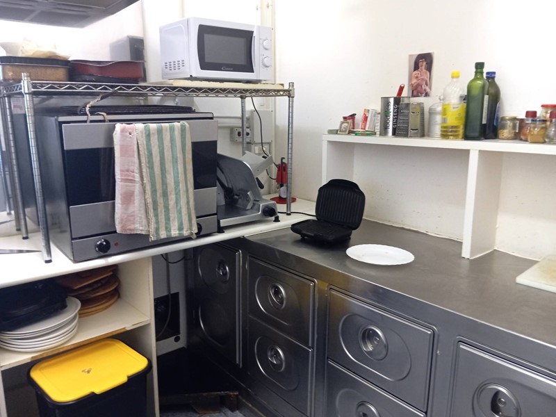 Il fondo è formato da un ampio vano con il bancone, doppi servizi con antibagno a norma, cucina per la preparazione di pranzi di lavoro e magazzino.