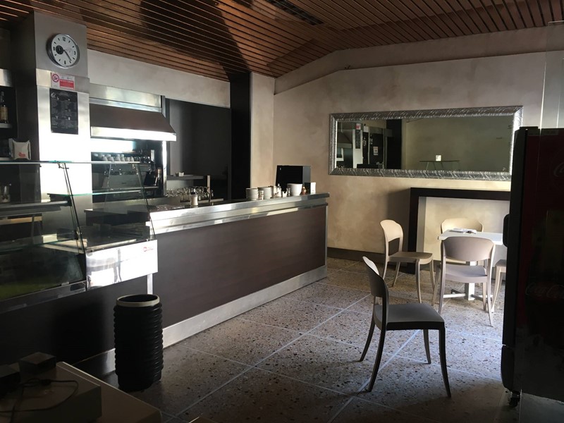 Gli spazi interni, separati da muri, sono suddivisi in una stanza unica e un bagno, il fondo è dotato di grandi vetrine che garantiscono una buona visibilità e illuminazione naturale.