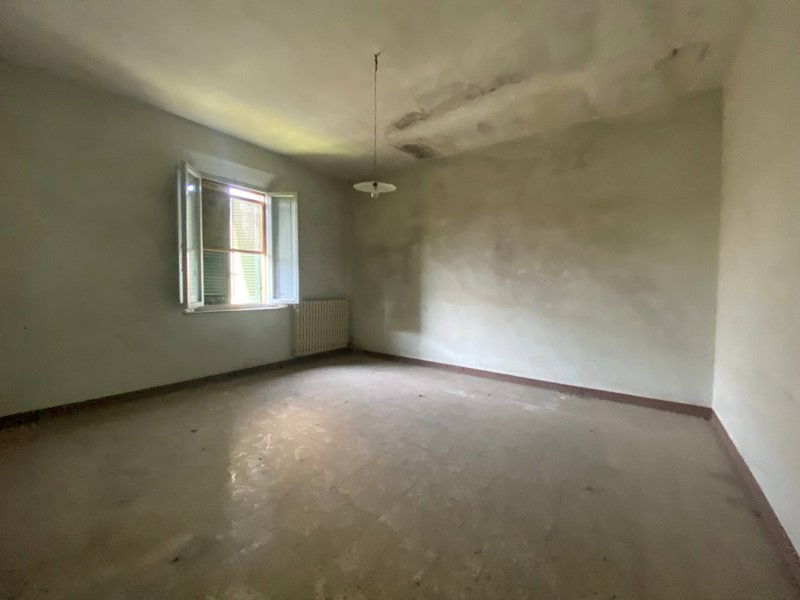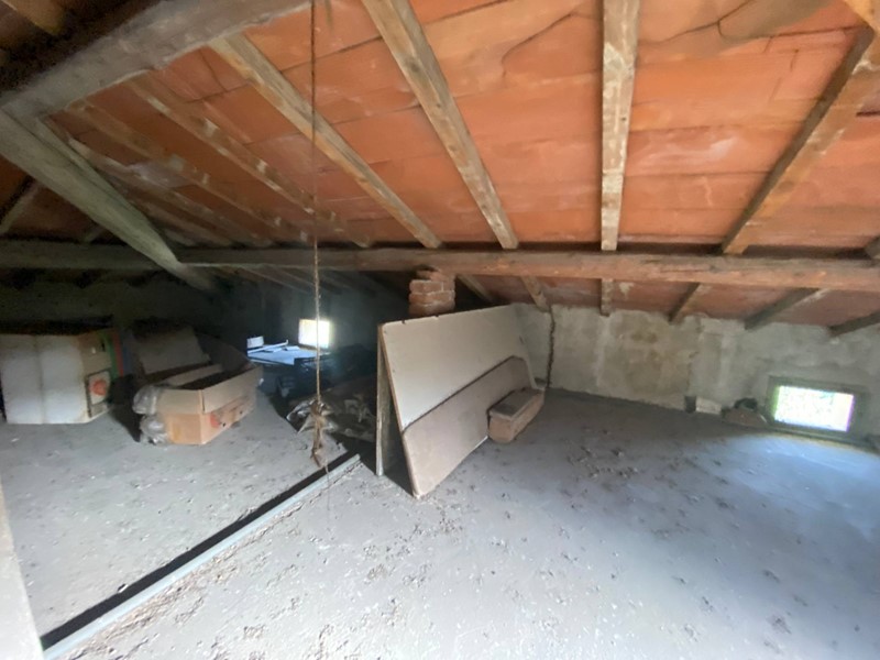 Dal cancello carrabile si accede alla proprietà che dispone un grande giardino interamente recintato. La casa colonica si sviluppa su tre livelli: a piano terra troviamo 4 grandi vani a un tempo adibiti a cantina; si accede al piano superiore da scala interna dove si sviluppa l'appartamento di 6 vani oltre il bagno, infine è presente una grande soffitta in parte praticabile. All'esterno la proprietà dispone di un forno, un fienile su due livelli di 90 mq e di un garage di 17 mq.