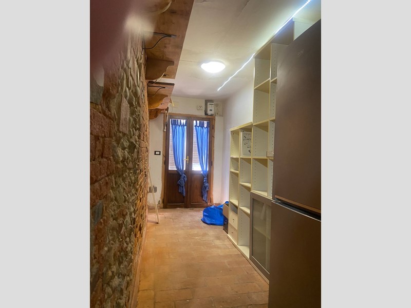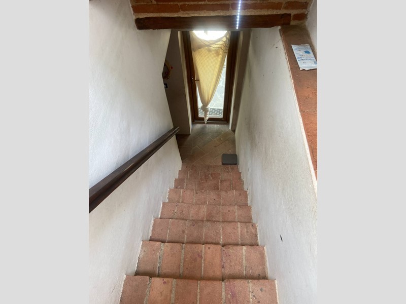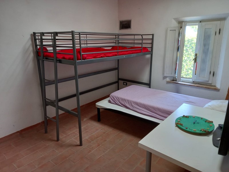 Rif. 2024P087 - L'appartamento si compone da due ingressi a piano terra, dove troviamo un ampia cucina abitabile con grande disimpegno e camino, attraverso delle scale accediamo al secondo piano dove abbiamo un ampia camera matrimoniale, ampio soggiorno o seconda camera, bagno con doccia e finestra. Completano la proprietà un posto auto ed un terreno di 5.000 ² con olivi secolari e frutteto. Pannelli fotovoltaici.