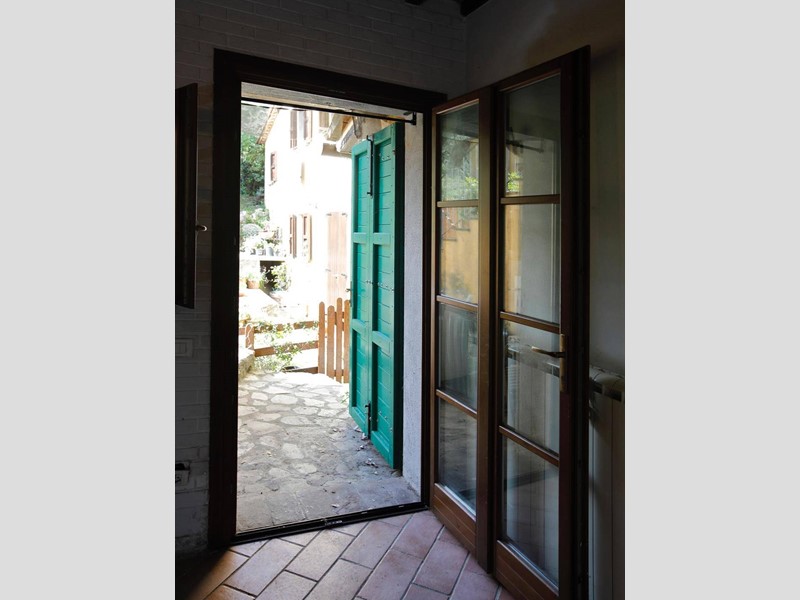 Gli ambienti sono luminosi e ben distribuiti, grazie alle ampie finestre in legno che garantiscono una buona illuminazione naturale.