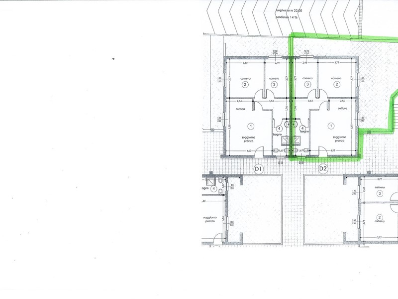 Gli spazi abitabili misurano 88,58 metri quadrati e sono suddivisi in 3 locali, cucina con angolo cottura 2 camere da letto un bagno con doccia e finestra cantina e garage.