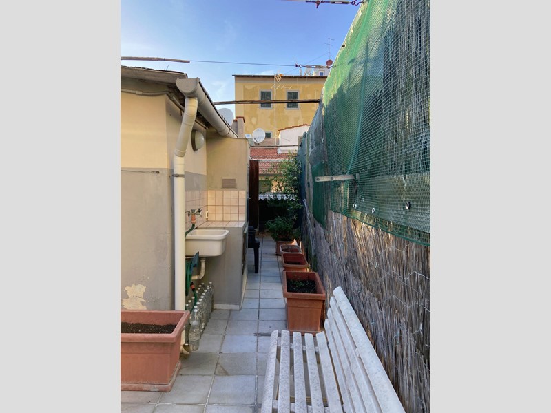 2024Li178 Porta a mare, terratetto su 3 livelli, per un totale di 130 m². Entrando nella proprietà troviamo un piccolo giardino piatrellato con doppio ripostiglio. L'interno si sviluppa in sala, cucina tinello ed il servizio. Al primo piano: 2 camere matrimoniali ed un secondo servizio. Al secondo ed ultimo piano ampia terrazza abitabile con vano pluriuso dotato di bellissimo camino. Completa l'immobile una cantina nel piano seminterrato. L'immobile si presenta in un contesto tranquillo. Il riscaldamento è autonomo, nessuna spesa condominiale. Da ristrutturare.