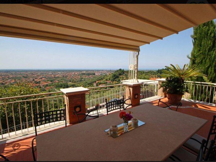 Rif. Vi2021050 - Vendesi sulle colline di Pietrasanta villa indipendente con piscina e vista mare. L'immobile ha una metratura di 310 mq e si sviluppa su tre livelli fuori terra nei quali possiamo trovare: sala, cucina abitabile, quattro camere matrimoniali delle quali una con jacuzzi, una camera singola, due bagni finestrati con vasca, tre bagni con doccia dei quali due finestrati, oltre ad una terrazza panoramica di 250 mq ed una struttura in muratura attrezzata con barbecue e cucina. Sempre all'esterno troviamo un locale lavanderia ed un bagno di servizio. Completano l'immobile una taverna fuori terra ed un parco di 5.000 mq . I posti auto sono cinque dei quali due coperti.
