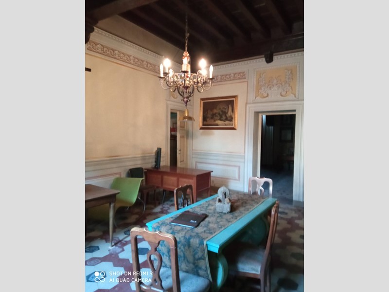 Internamente è cosi suddiviso: ampio ingresso, salotto, salone, cucina soggiorno, camera; dal corridoio si accede ad altri vani da determinarsi secondo uso personale. L'intero piano e completamente affrescato r con solai in legno a cassettone, finestre e porte in legno che rispettano i criteri di costruzione dell'epoca, nell'immobile sono presenti 7 bagni con doccia alcuni finestrati altri con aereazione forzata.