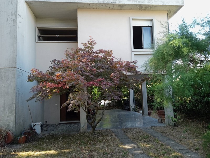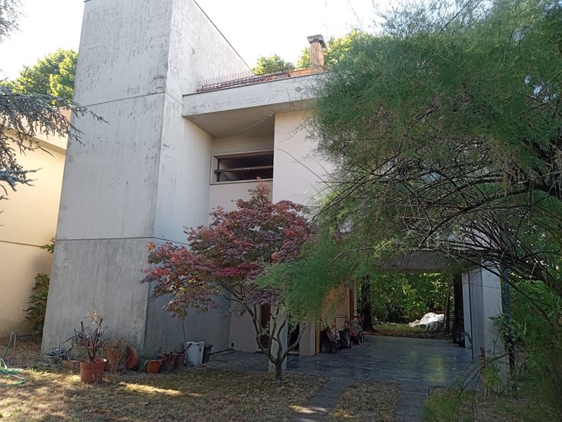 Villa con parco privato, di tipica architettura anni 70, con gronde e copertura piana.