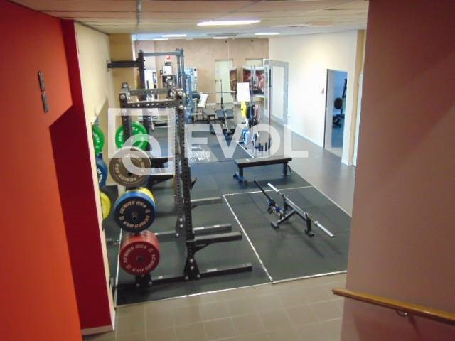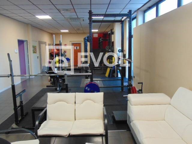 Salendo al piano primo, ampia zona fitness attrezzata open-space da 380 mq con luminose vetrate affacciata sul lato strada, un ufficio, un ripostiglio, un antibagno e un bagno.