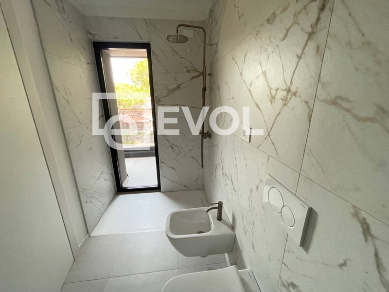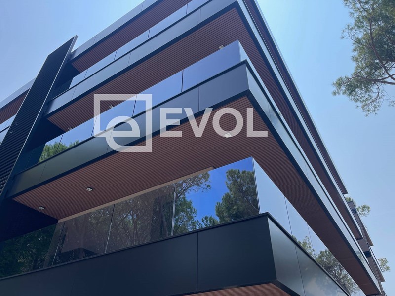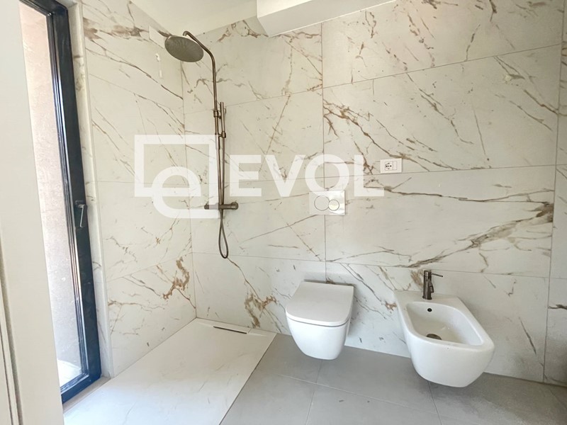 C'è la possibilità di acquistare uno dei 5 posti auto coperti e uno dei 7 posti auto scoperti. L'appartamento al piano terra ha un giardino di 240 metri quadrati. I pavimenti e le pareti degli appartamenti sono rivestiti con piastrelle in gres porcellanato di medie e grandi dimensioni, 60 x 60 e/o 100 x 100, oppure con listoni in legno prefinito di 10/12 mm di spessore, 120/160 di larghezza e 1000/2000 di lunghezza. Il pavimento della terrazza è in gres porcellanato 30 x 60. Le scale e i pianerottoli sono rivestiti in marmo. I parapetti di tutte le terrazze saranno realizzati in vetro strutturale ancorato alla parete con il sistema faraone, mentre lo spessore della parete e della soletta sarà rivestito con una fascia in Alukobond color antracite.