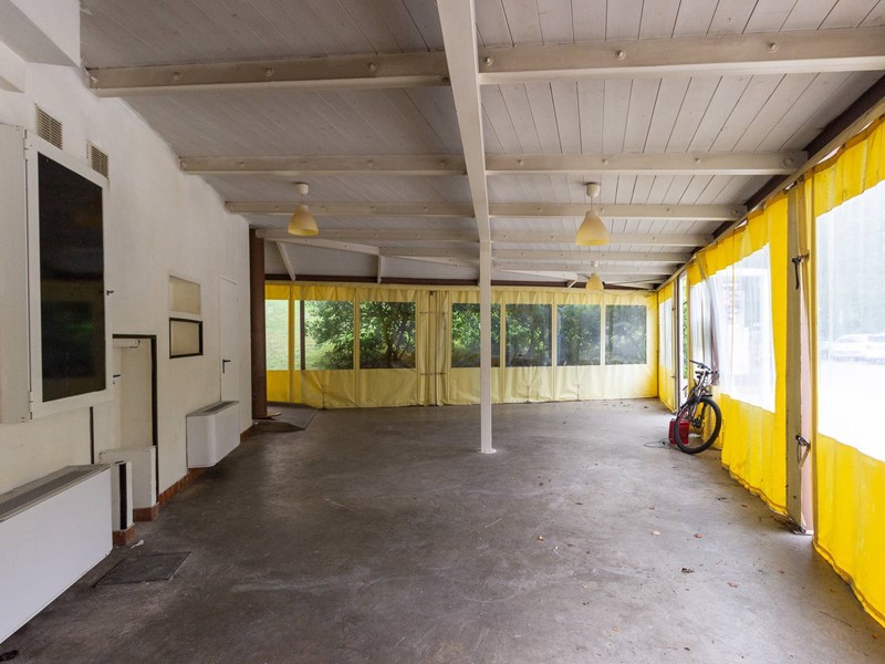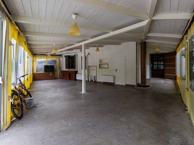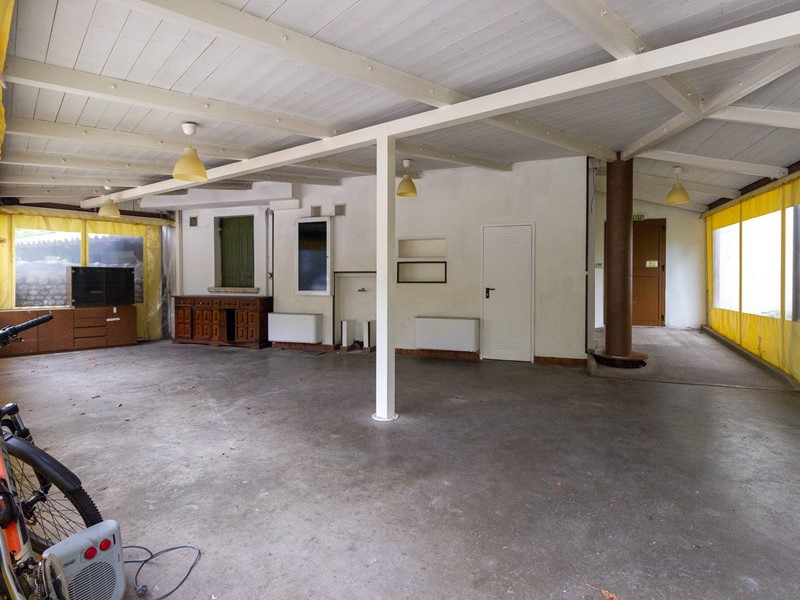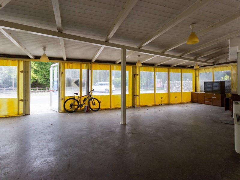 L'immobile è composto da un ampio ingresso da destinare a zona bar, una sala pranzo con caminetto, cucina, servizi igienici e un magazzino. All'esterno una terrazza coperta con affaccio sui laghetti delle risorgive utilizzabile tutto l'anno. La zona circostante è ben servita da parcheggi pubblici, rendendo comodo l'accesso al locale.