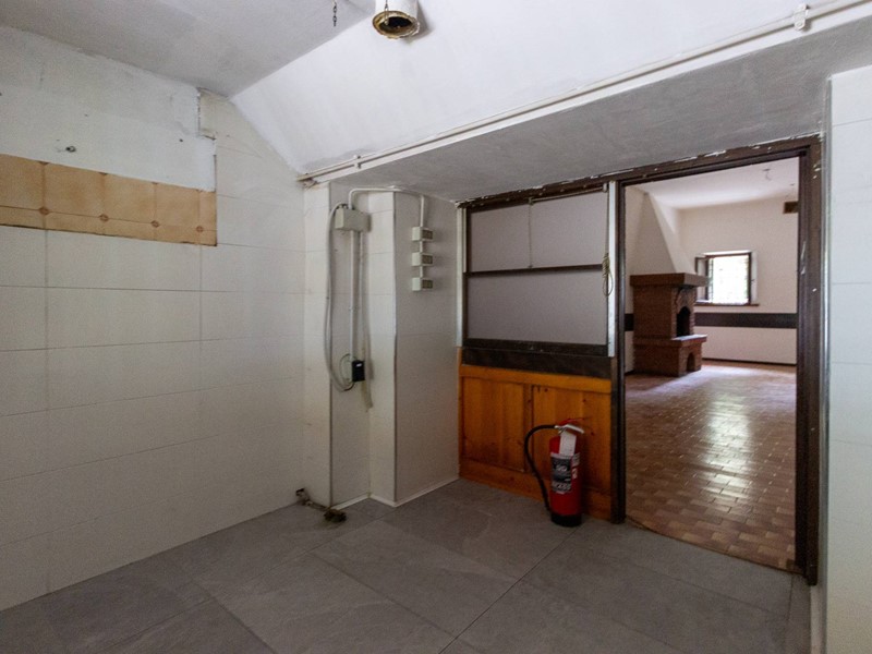 L'immobile è collegato ad un appartamento al piano superiore composto da ingresso, cucina, soggiorno, due camere da letto, un bagno e un ripostiglio.