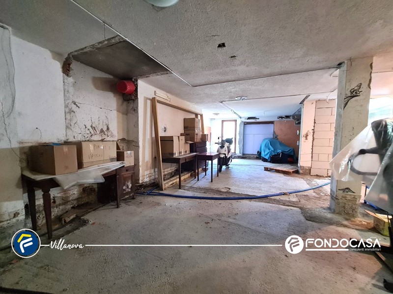 L'intera soluzione, edificata alla fine degli anni '80 come alloggio unico e successivamente rivista per essere suddivisa allo stato attuale, vede un ingresso tramite cancello elettrico che permette di accedere al giardino, in parte pavimentato, nel quale è possibile parcheggiare le auto e nel quale si trova anche la rampa di accesso al magazzino carrabile posto al piano interrato.