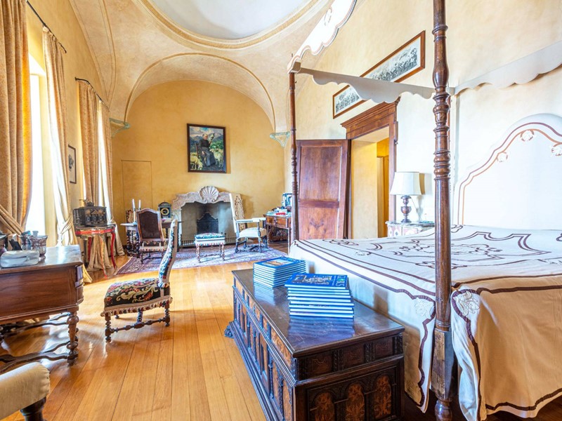 ' Primo piano: accessibile sia tramite una scala che con ascensore, il primo piano è dedicato alla zona notte. La camera matrimoniale padronale, dotata di locale guardaroba e bagno en-suite, offre il massimo del comfort. Sullo stesso piano si trovano altre sette camere da letto, ciascuna con cabina armadio e bagno privato. Un ampio terrazzo panoramico completa questo livello.