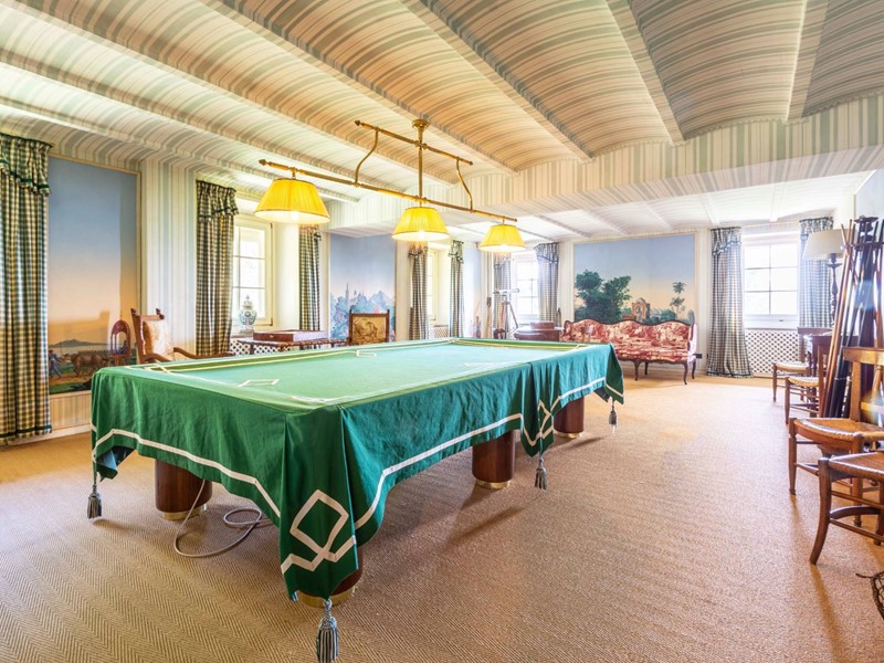 ' Secondo piano: qui troviamo una sala biliardo, una palestra attrezzata, una sauna e due appartamenti autonomi. Il primo è composto da due locali con servizi e l'altro da tre locali con servizi.