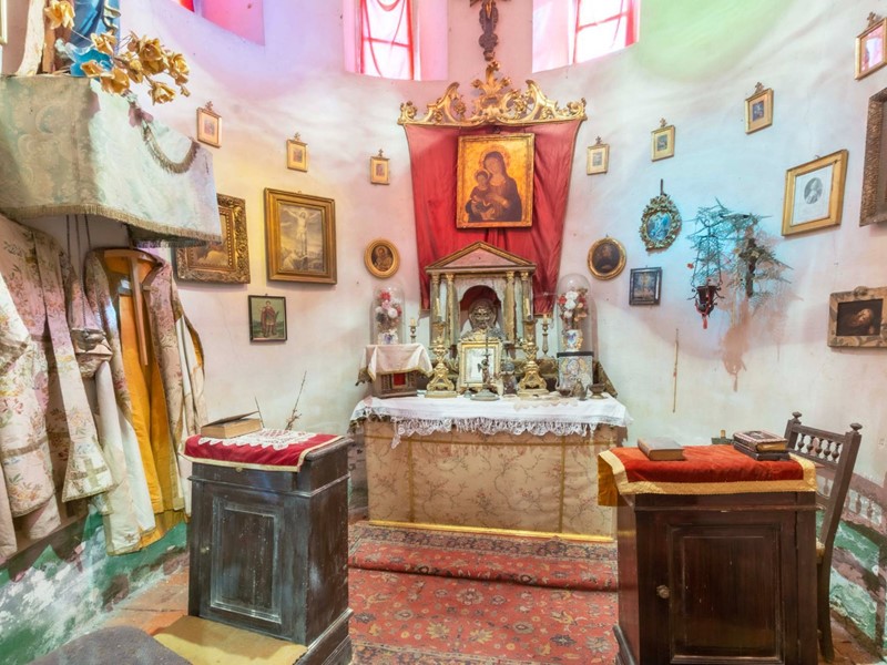 Gli ambienti interni sono ampi e ariosi, arredati con elementi di grande pregio, in uno stile che abbraccia diverse epoche, da quella che risale alla sua costruzione fino agli anni '50 del secolo scorso.