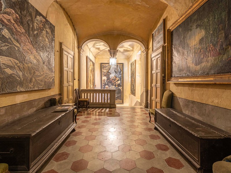 ' Primo piano: una maestosa scala conduce alla zona notte, dove si trovano sei camere da letto nobili e ambienti.