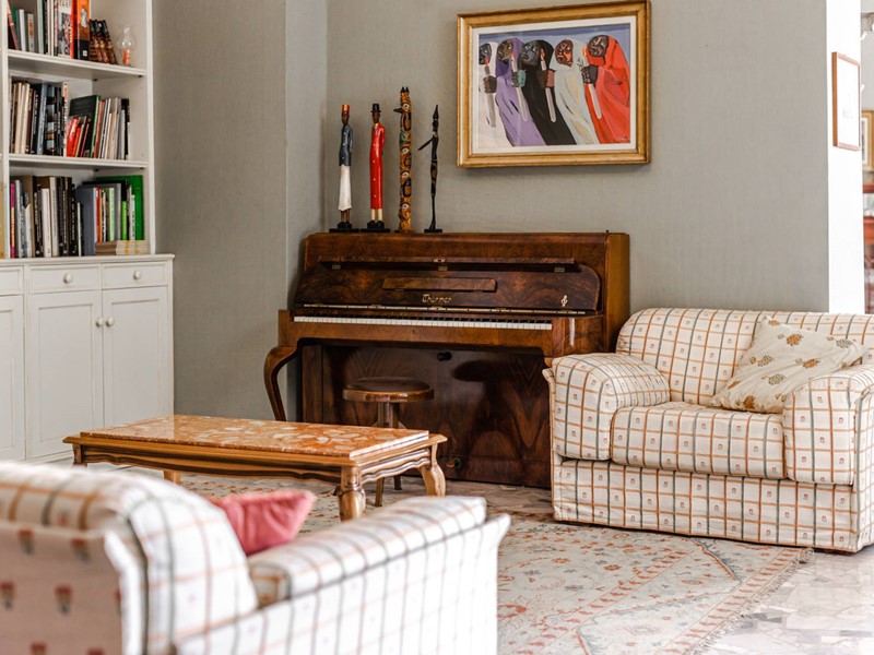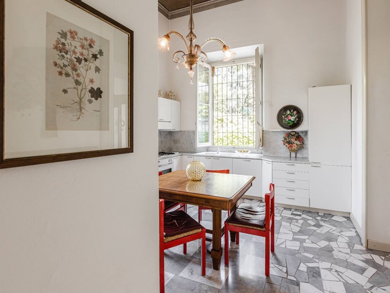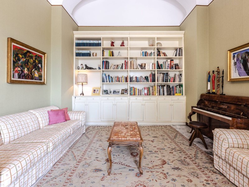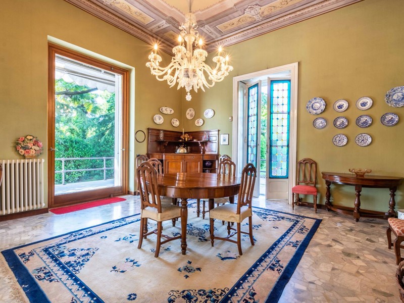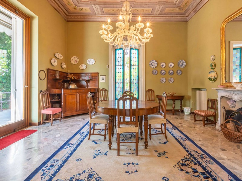 Il piano nobile di rappresentanza è composto da un ampio ingresso affrescato, una sala da pranzo con camino in marmo e con soffitti affrescati, un salotto, un soggiorno con camino in pietra, un'ampia cucina con soffitti affrescati e terrazzino di servizio, un locale stireria e un bagno di servizio.