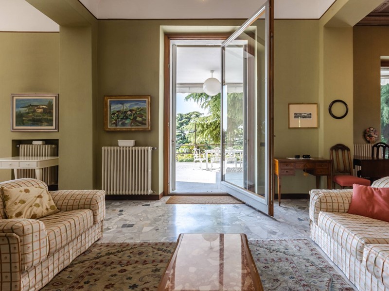La sala da pranzo, il salone ed il soggiorno espongono su un ampio patio, protetto da tende motorizzate, da cui si può godere di una vista incantevole sul Parco.