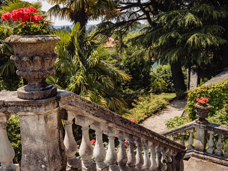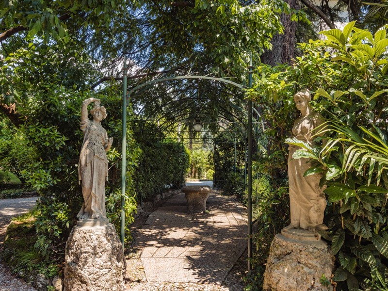 Il parco si estende per una superficie di circa 9.000 mq, in posizione soleggiata, riccamente piantumato. Si sviluppa a terrazze con molteplici aree destinate a prato, a roseto, un orto e un campo da tennis. Nel Parco è presente una limonaia e una serra.