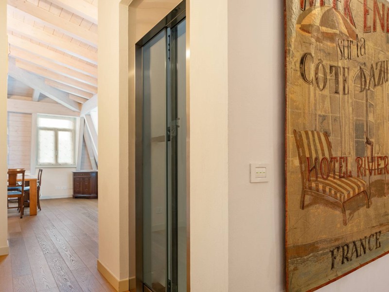 Ascensore con pareti in vetro: permette un collegamento agevole tra i vari livelli della proprietà.