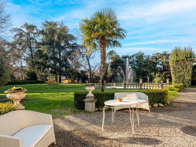 Spazi esterni e servizi Allesterno, la villa è circondata da un incantevole giardino allitaliana, ornato da alberi secolari e arricchito da una fontana settecentesca.