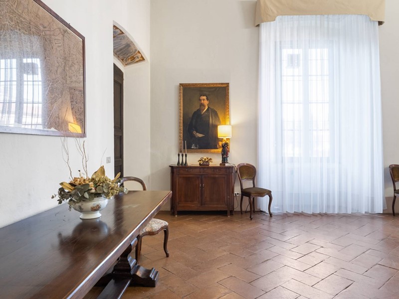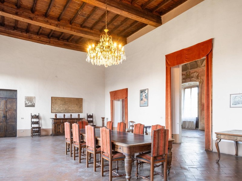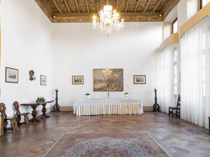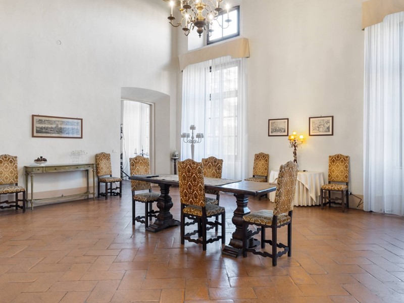 Piano terra: le sale di rappresentanza, finemente arredate e decorate con mobili originali e affreschi depoca, possono ospitare fino a 300 persone.