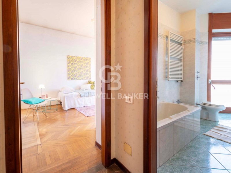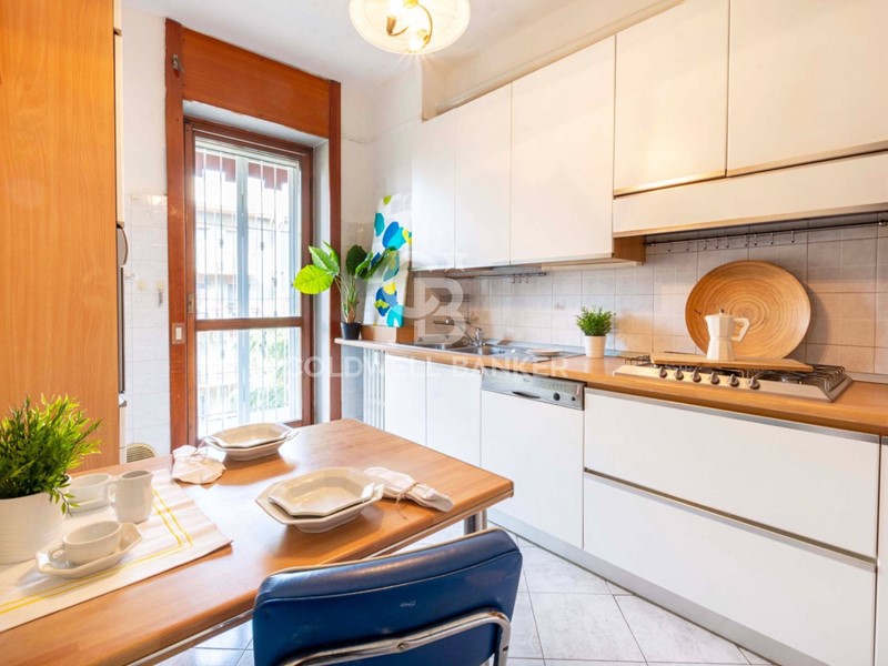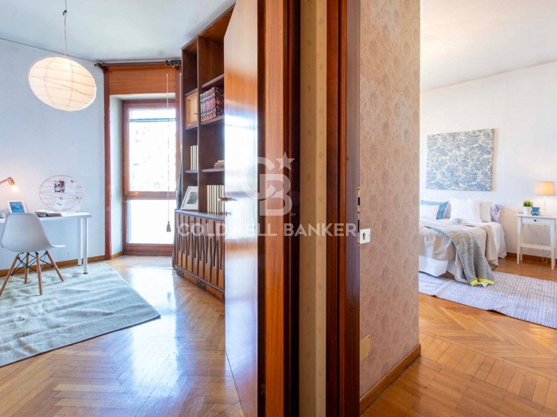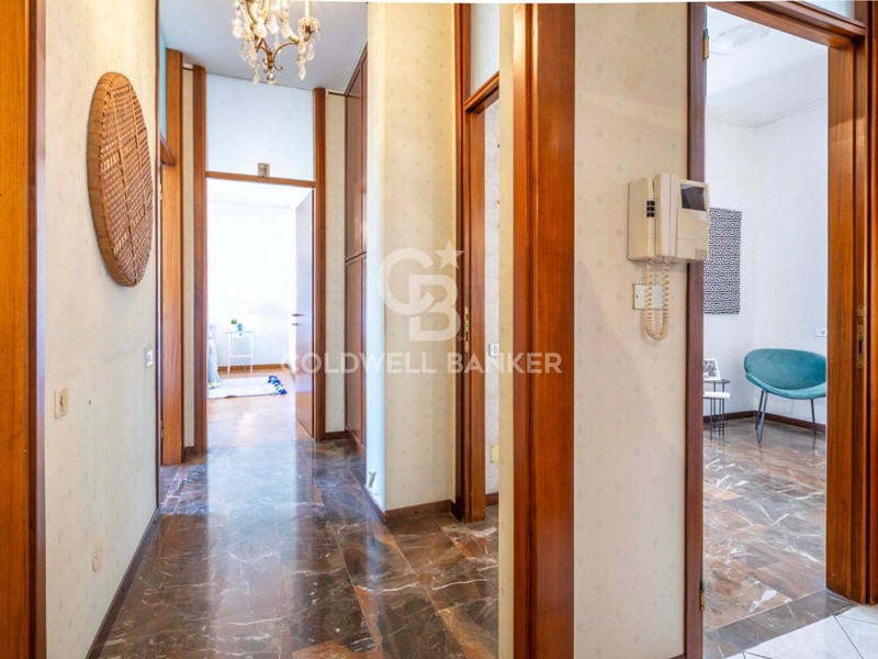 Posto al quarto piano e servito da ascensore, l'appartamento si compone da ingresso padronale nel soggiorno con ampio balcone, ingresso di servizio nella cucina abitabile con balcone, due bagni entrambi finestrati, una camera da letto padronale e due camere da letto.
