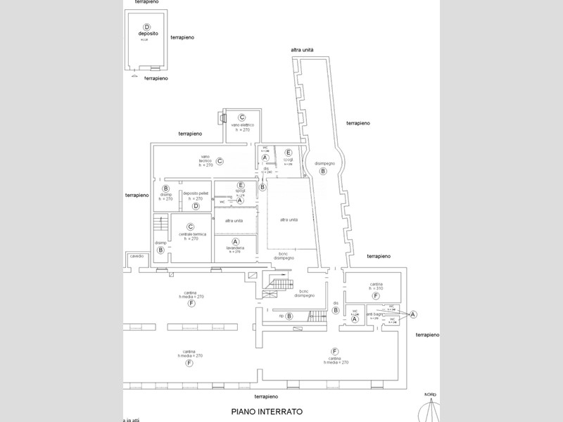 Piano seminterrato: ampia cantina con volte in mattoni, ideale per la conservazione dei vini.