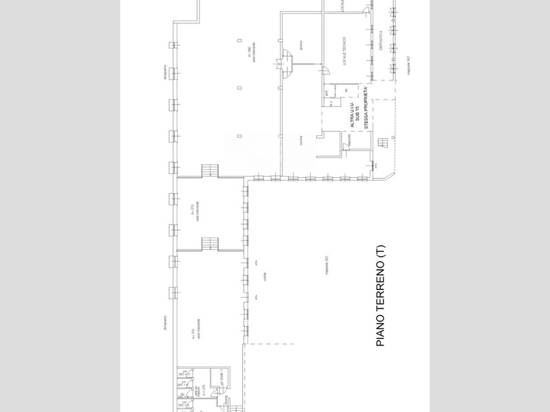 Piano terra: ingresso scenografico, salone di rappresentanza, sala da pranzo, cucina e vari locali.
