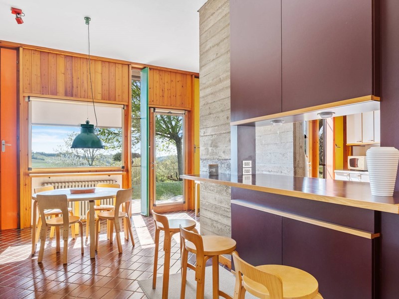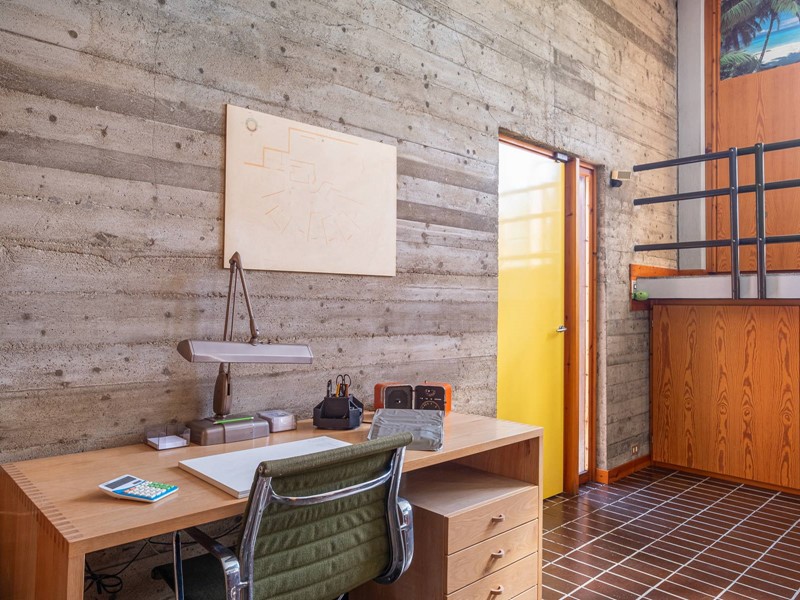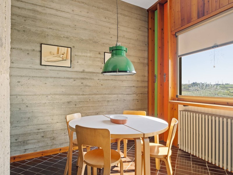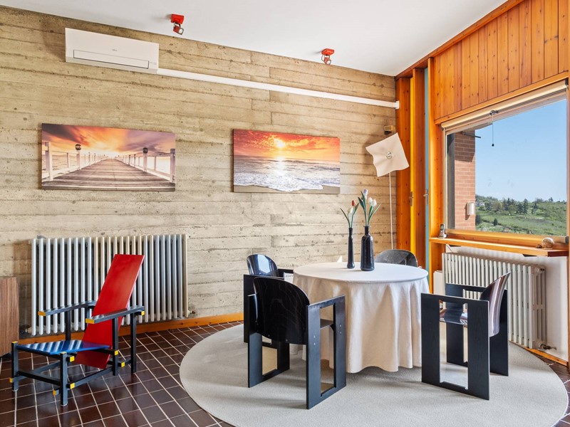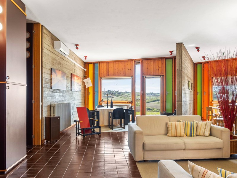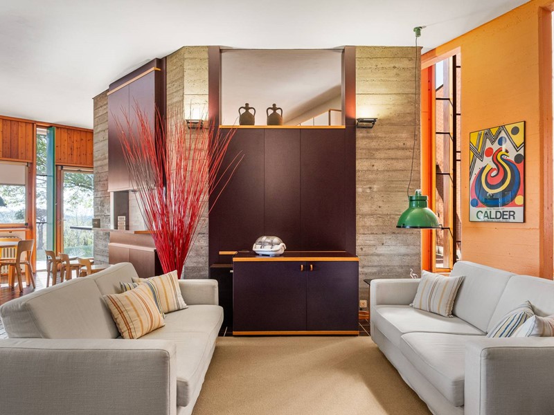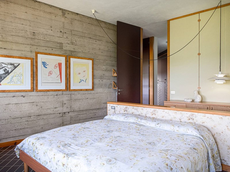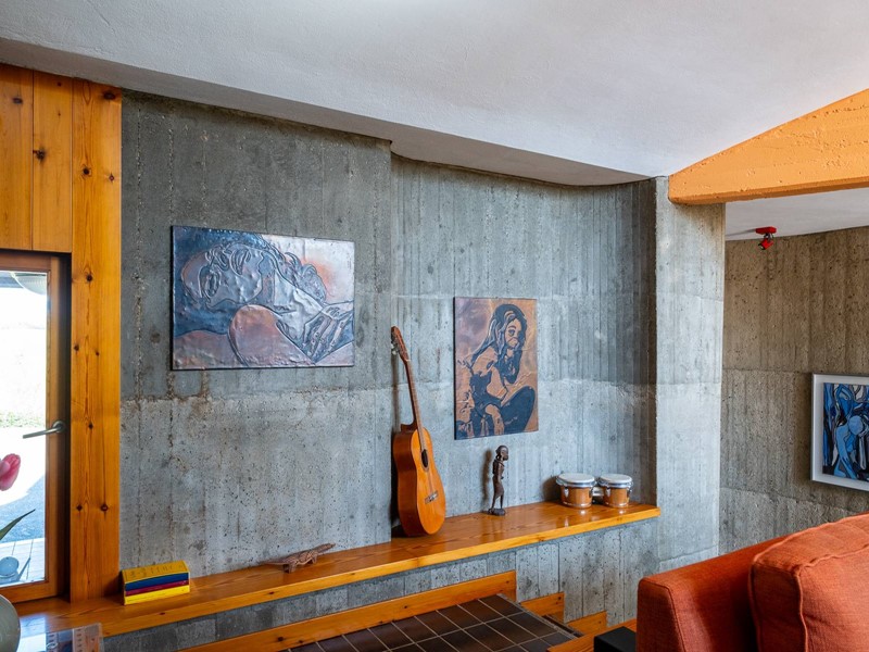 La proprietà si distingue per limpronta architettonica brutalista, in cui il cemento a vista dialoga con la luce, il paesaggio e la conformazione naturale del terreno.