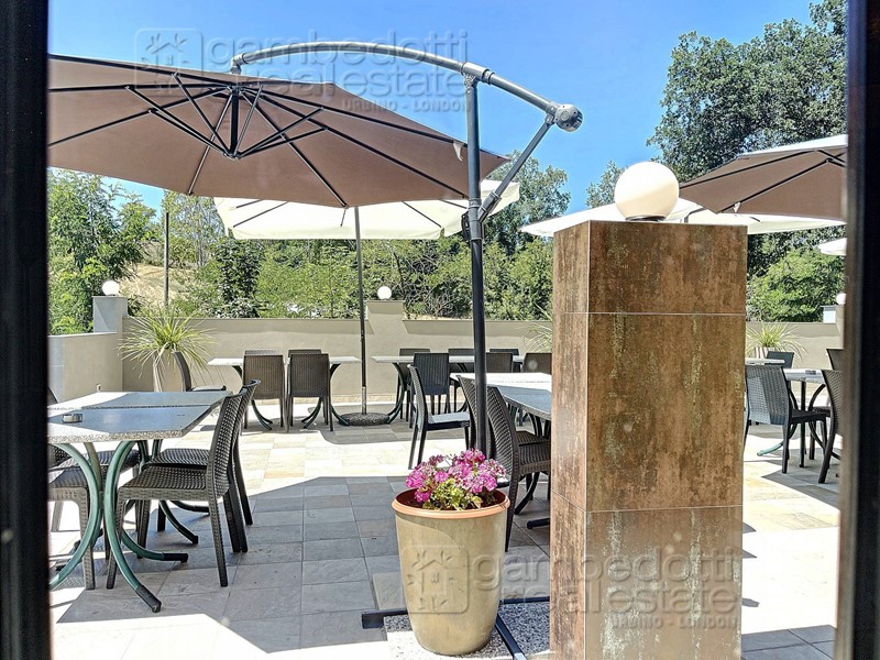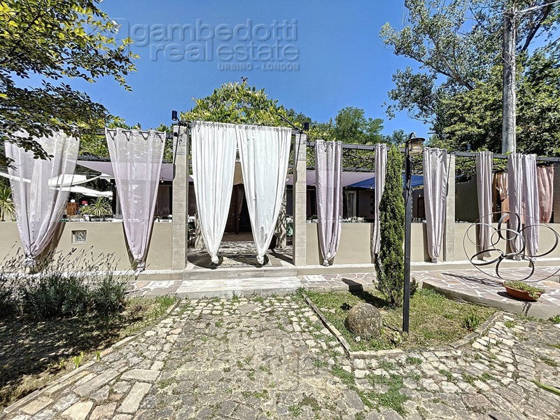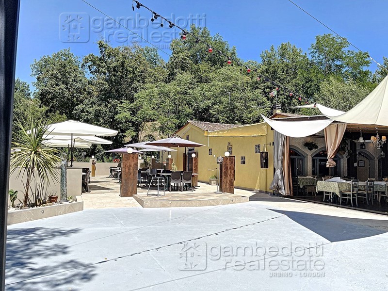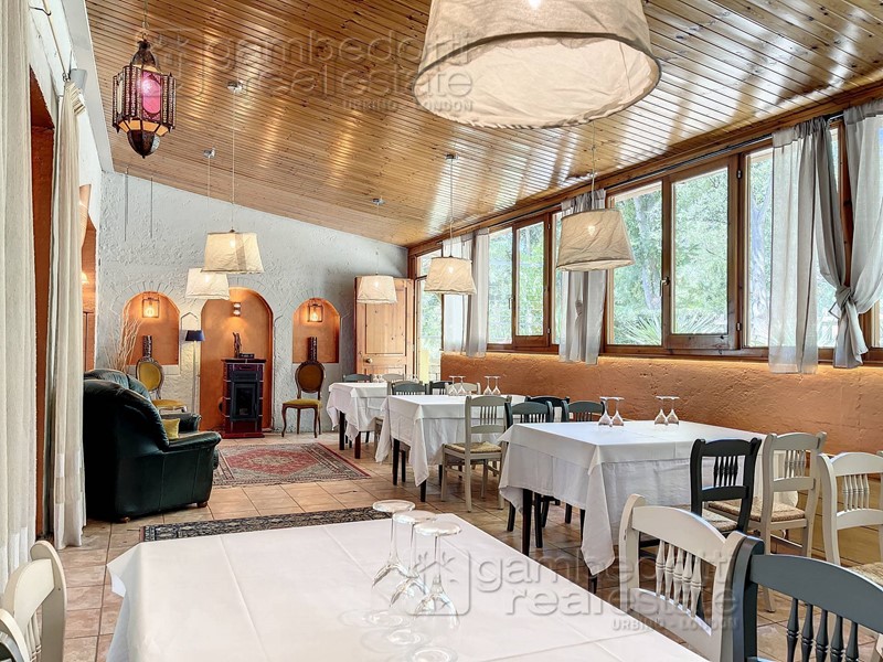 In vendita a Mondaino (entroterra in Provincia di Rimini) struttura ricettiva adibita a ristorante comprensiva di locali, attrezzature ed attività in esercizio, inserita in una splendida oasi verde attrezzata, a pochi chilometri dalle spiagge di Rimini e Cattolica. La struttura è composta da 3 ampie sale distinte ed un ampio spazio verandato, una zona bar, un'ampia cucina attrezzata per la ristorazione ed un laboratorio pizzeria. All'ingresso del ristorante l'area è attrezzata con strutture aperte ideali per il rafrescamenteo nel periodo estivo. Nelle aree esterne sono ricavate, oltre la zona verandata attrezzata per i tavoli della somministrazione, altre aree tra cui delle zone relax con arredo a salotto da esterno con divanetti poltrone ed ombrelloni ombreggianti, ed una pista da ballo con relativo rialzo per l'orchestra o DJ. Nel corpo centrale, al piano primo, è presente un mini appartamento comodo come "pied a terre" per il gestore o custode del locale. La struttura è ideale per cerimonie, banchetti o semplicemente per cene o pranzi in completo relax in un ambiente originale immerso nel verde. Il complesso dispone di 2000 mq di giardino attorno al ristorante dove si trovano due importanti sorgenti termali, ufficialmente riconosciute, ed infine un parcheggio di proprietà di 750 mq. Altra nota importante è la possibilità di stravolgere l'intera struttura a ristorante e cambiare la tipologia di offerta ricettiva quale struttura a mini-appartamenti per locazioni brevi e/o centro benessere. Occasione da non perdere, considerando anche che l'attività di ristorazione in essere, dispone attualmente di un ottimo giro d'affari. Contattaci subito per approfondimenti o per effettuare una visita, chiama lo 0722 041400. (B)
